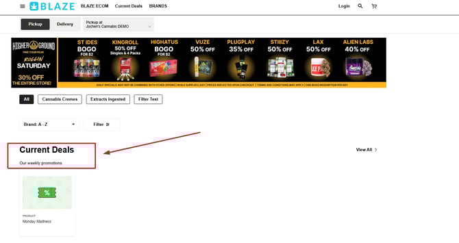 Show In Blaze Sites: Can show deal cards in your homepage if you use BLAZE Sites for your content site (different from your menu page)