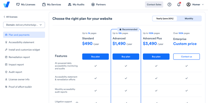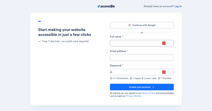 Please note this process will enable a free 7 day trial and it is HIGHLY RECOMMENDED to pay for a plan immediately after Sign Up so the accessiBe widget remains enabled on the ECOM menu.