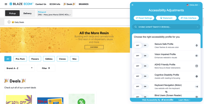 This article will explain how to sign up for and integrate the accessiBe ADA widget to your ECOM Menu and BLAZE Site (if applicable)