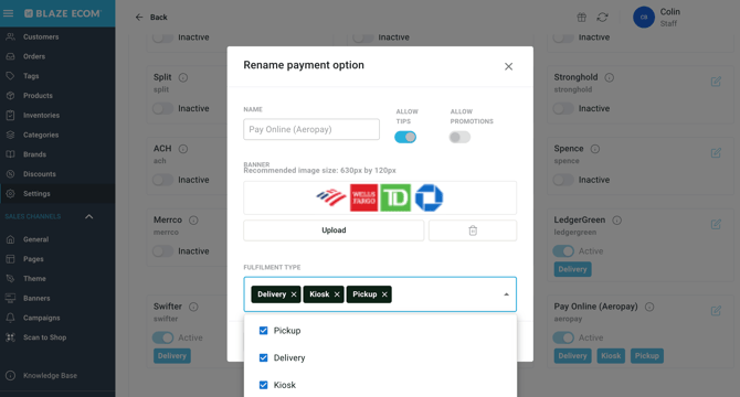 - Head to Payment Options -> Local Payment and configure Fulfillment Type