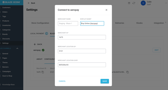 Aeropay must be configured in the Retail POS before completing the ECOM Mission Control steps.