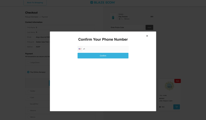 - Customers must have an Email AND Phone Number in order to use Aeropay. If only one was requested during Signup, the missing contact information will be requested when the Customer attempts checking out with Aeropay for the first time.