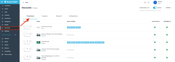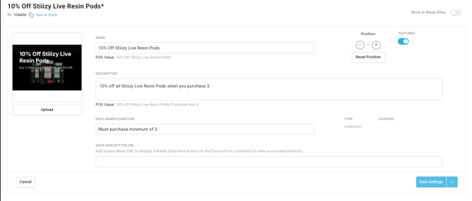 Blaze ECOM now supports Company Promotions, making it easier for you to take advantage of special offers created at the company level. Promotions set up in the POS will automatically appear in Mission Control Discounts tab.