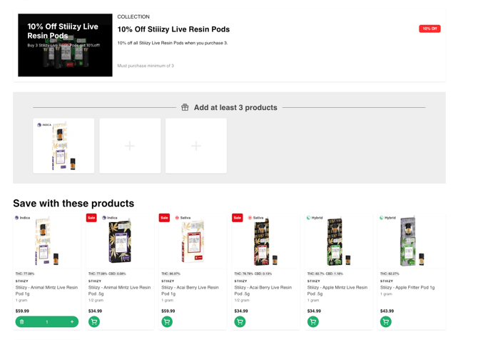 - Discounted Products: These are the items that will receive the discount once the required products are in your cart.