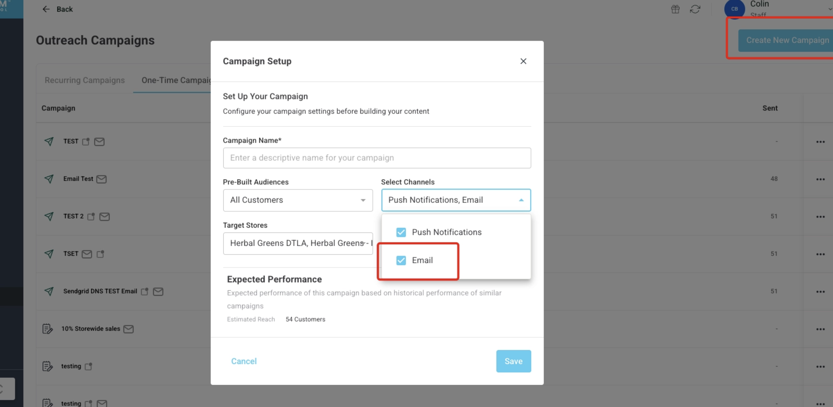 - Configure Recurring and/or One Time Campaign and select Email as sending Channel