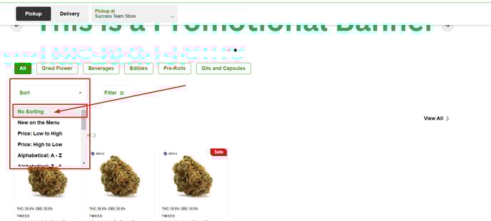 This Sorting Option displays all products on the menu based on their CBD content as set in the POS, starting with the product with the the lowest CBD content value, increasing to the highest value