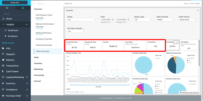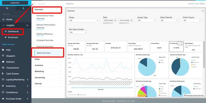 2) On the top left of your side bar menu, select Insights > Dashboards > Overview > Sales Summary