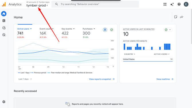 2) Select your app property in the top left corner. It will be named "App-prod"