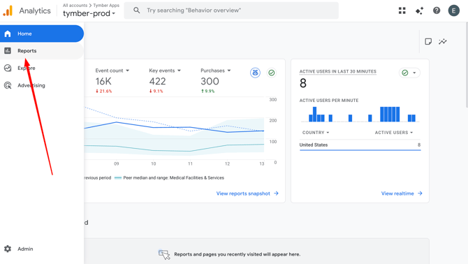 3) Using the left sidebar menu go to Reports