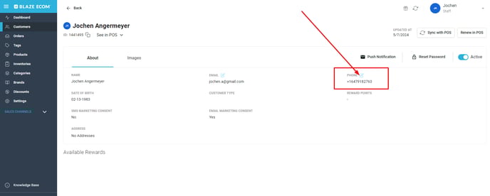 Inside the customer's profile, click on the edit icon next to PHONE: