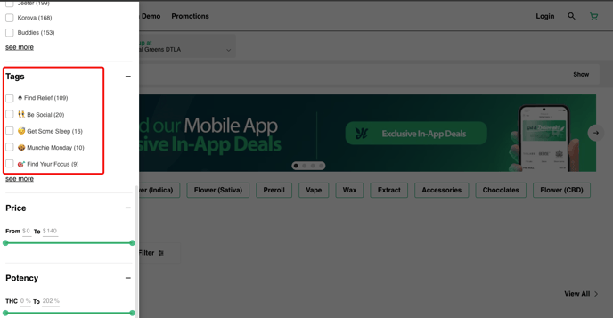- The tag will now revert to being available to customers in the Filters menu on the store page and the primary categories will be listed first.