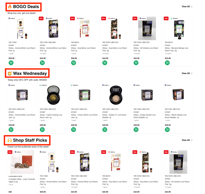 - If multiple featured sections are created, they will be ordered automatically above the primary categories.