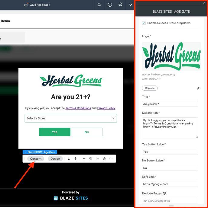 Overview of the Age Gate Widget in the BLAZE Sites Editor