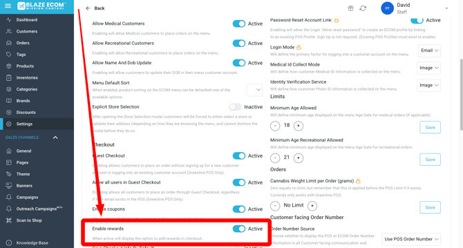 Settings > Store Configuration > Enable rewards